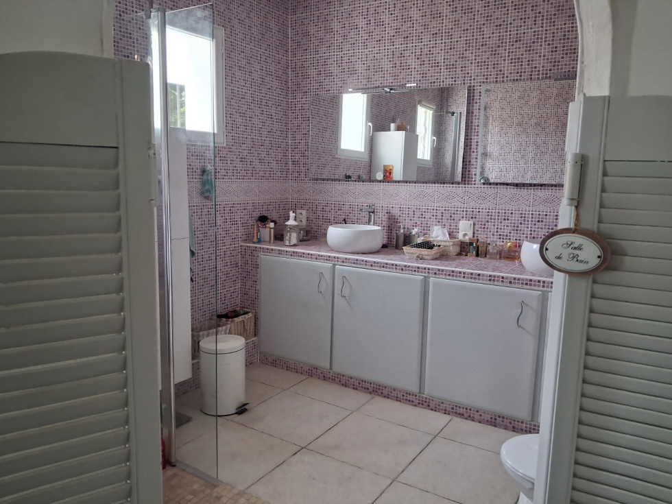AVIGNON : En EXCLUSIVITÉ : Grande maison non mitoyenne de 127m2 environ de plain pied sur une parcelle de 558m2 arborée et clôturée, quartier St Jean limite Pont des 2 eaux. Elle est exposée plein sud, très lumineuse, constituée d'une entrée, un vaste espace jour avec belle cuisine ouverte aménagée et équipée, 3 chambres, une salle d'eau, une suite parentale avec sa salle d'eau privative, 2 WC, grand garage. La maison est en excellent état général, rénovée au goût du jour, chauffage/climatisation par pompe à chaleur gainable, double vitrage. Beau jardin bien entretenu avec piscine hors sol, le terrain est piscinable. Taxe foncière : 1800€