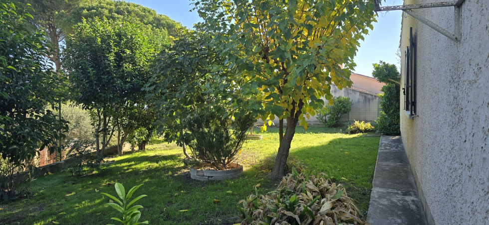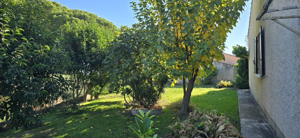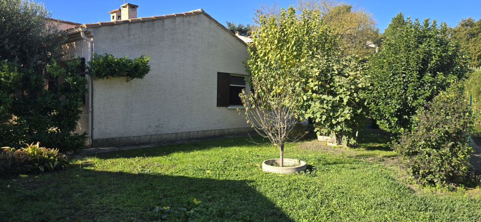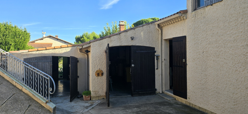 Dans le beau village de Saint Saturnin Les Avignon, en colline, villa de plain pied traditionnelle construite en 1970 de 90 m2 sur terrain de 560 m2 dans une petite copropriété de 4 lots sans syndic, ni charge, comprenant une cuisine indépendante aménagée, un beau salon séjour de 31 m2, 3 chambres, une salle d'eau et un wc. La maison est agrémentée d'une terrasse couverte, de menuiseries double vitrage bois, d'un chauffage central gaz de ville, de deux garages, d'un portail motorisé et d'un visiophone. TF : 1571 €, Prix : 275.000 €, prévoir rafraîchissement, contact AEI IMMOBILIER Mr MORES O6124621O1, agent commercial RSAC 443816145 RCP ACI 02856