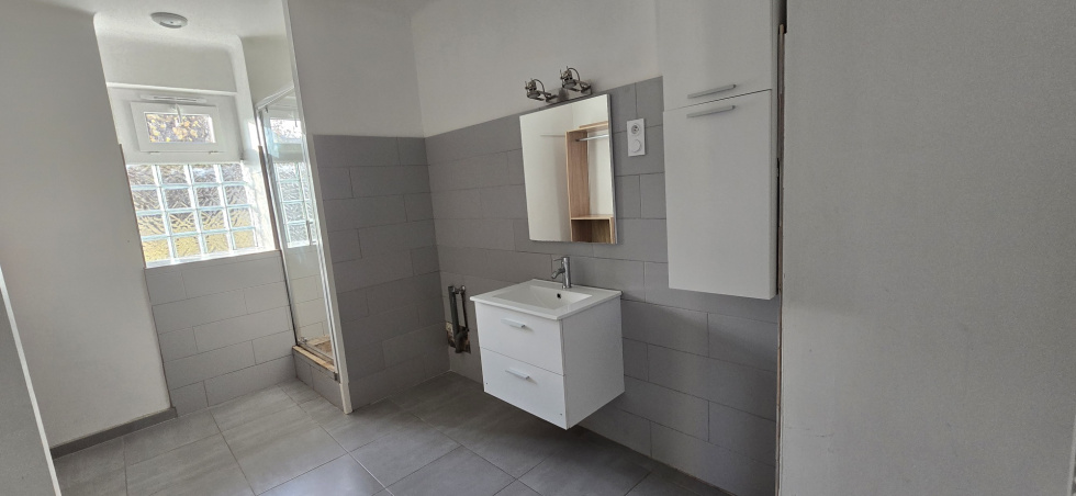 ETAGE : T3 SH 64 M2 COMPREND CUISINE AMENAGEE US 4.5 M2, SEJOUR SALON 23.78 M2 CLIMATISATION REVERSIBLE NEVE 3.5 KGS, DEGAGEMENT NUIT, DEUX CHAMBRES 10.43 et 11.35 M2, WC 2 M2, BACLON. CONVECTEURS ELECTRIQUES CHAMBRES ET SECHE SERVIETTE SALLE D'EAU.