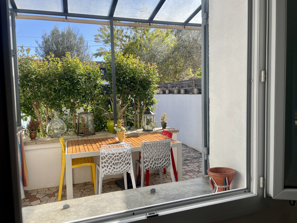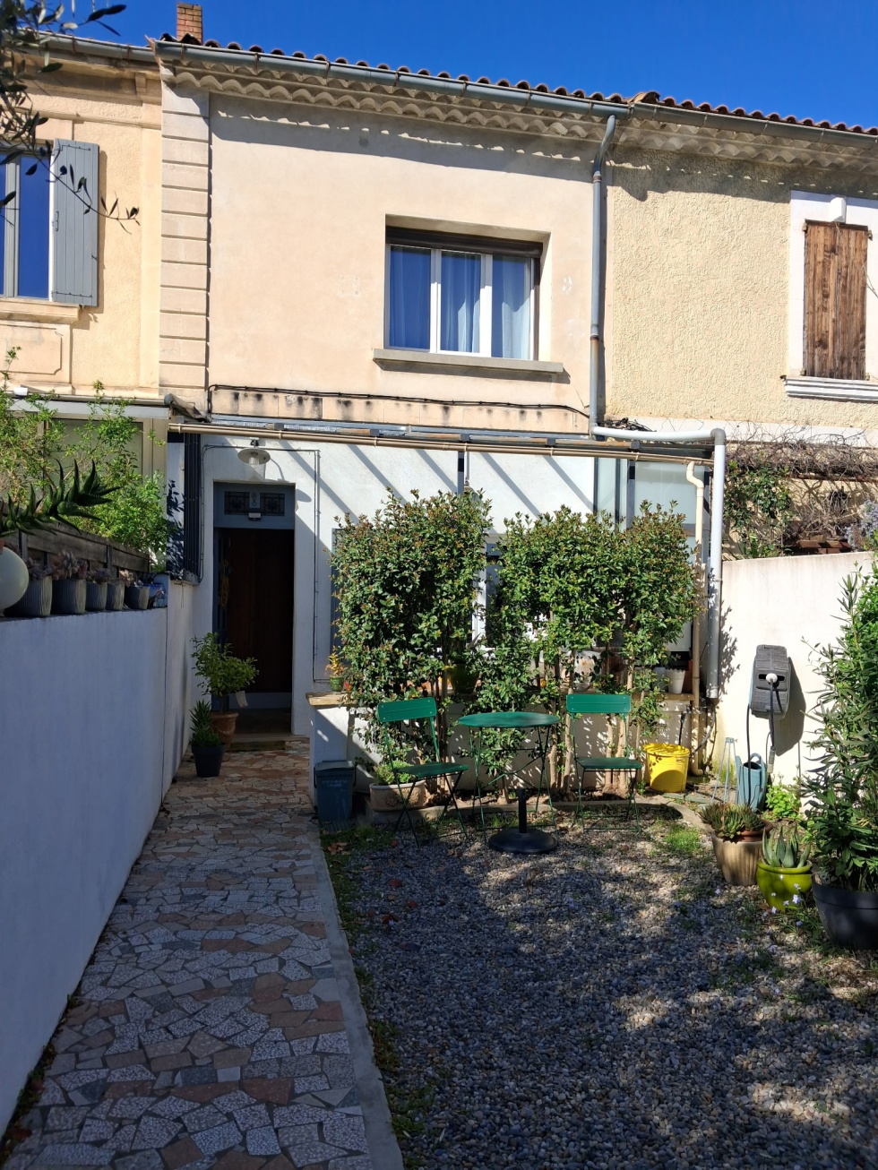 AVIGNON : 1ère ceinture Quartier Trillade/Arrousaire, charmante maison de ville plein sud avec jardin et garage/atelier, à proximité de tout transport, des commerces et des remparts. Elle est constiutée d'une entrée, pièce de vie avec salon/séjour, cuisine ouverte entièrement aménagée, dressing, grand cellier, une salle d'eau et un WC. À l'étage 2 grandes chambres parquetées et un dressing. La maison est en bon état général, elle est très agréable, fonctionnelle et lumineuse. Jardin plein sud avec terrasse et véranda. Doubles vitrages, chauffage central gaz de ville et climatisaton.
